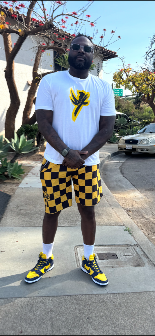 Checkered black and yellow shorts